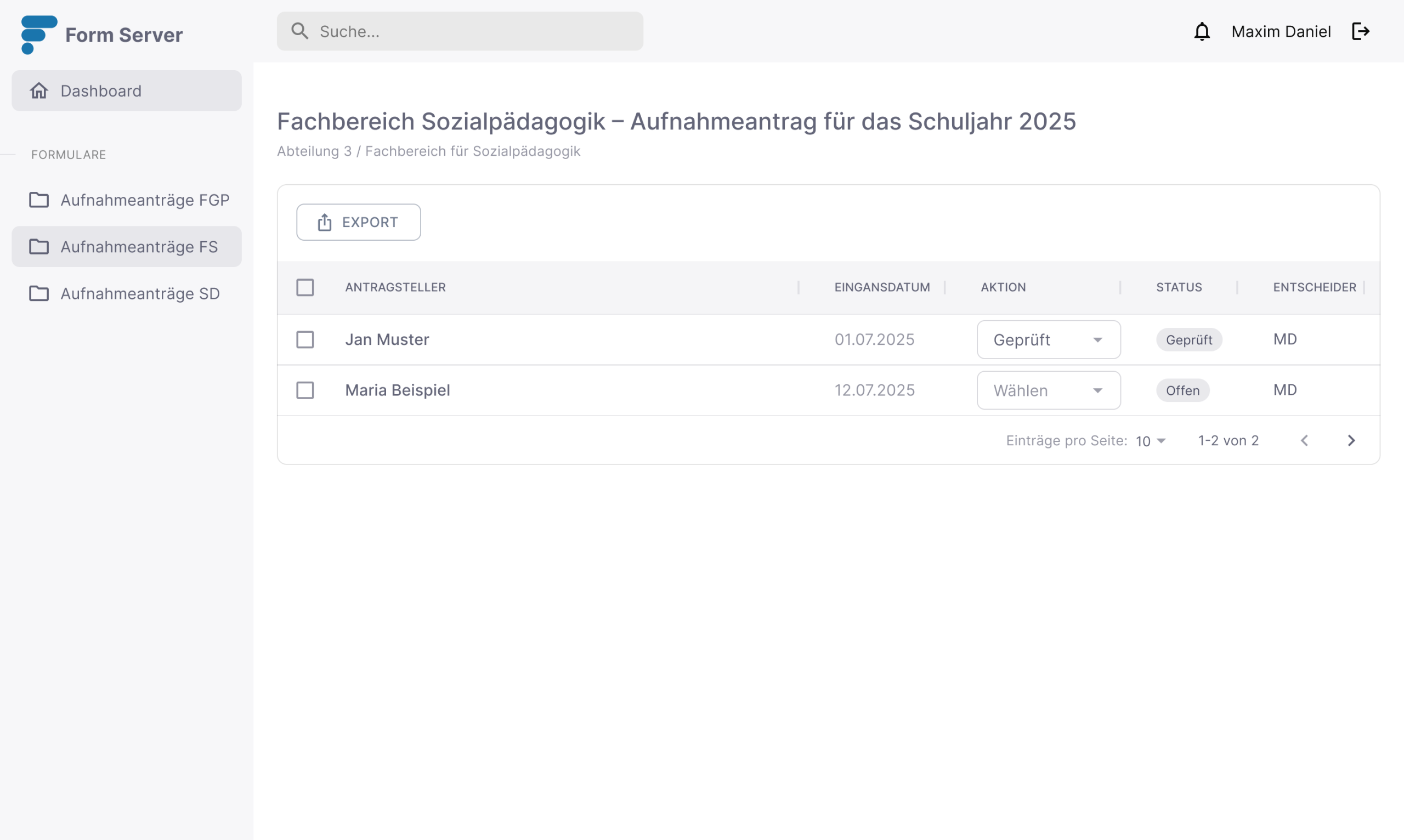 Mit unserem zentralen Verwaltungs-Backend behalten Sie jederzeit den Überblick über alle Formulare, Anträge und deren Bearbeitungsstatus – effizient, transparent und automatisiert.
