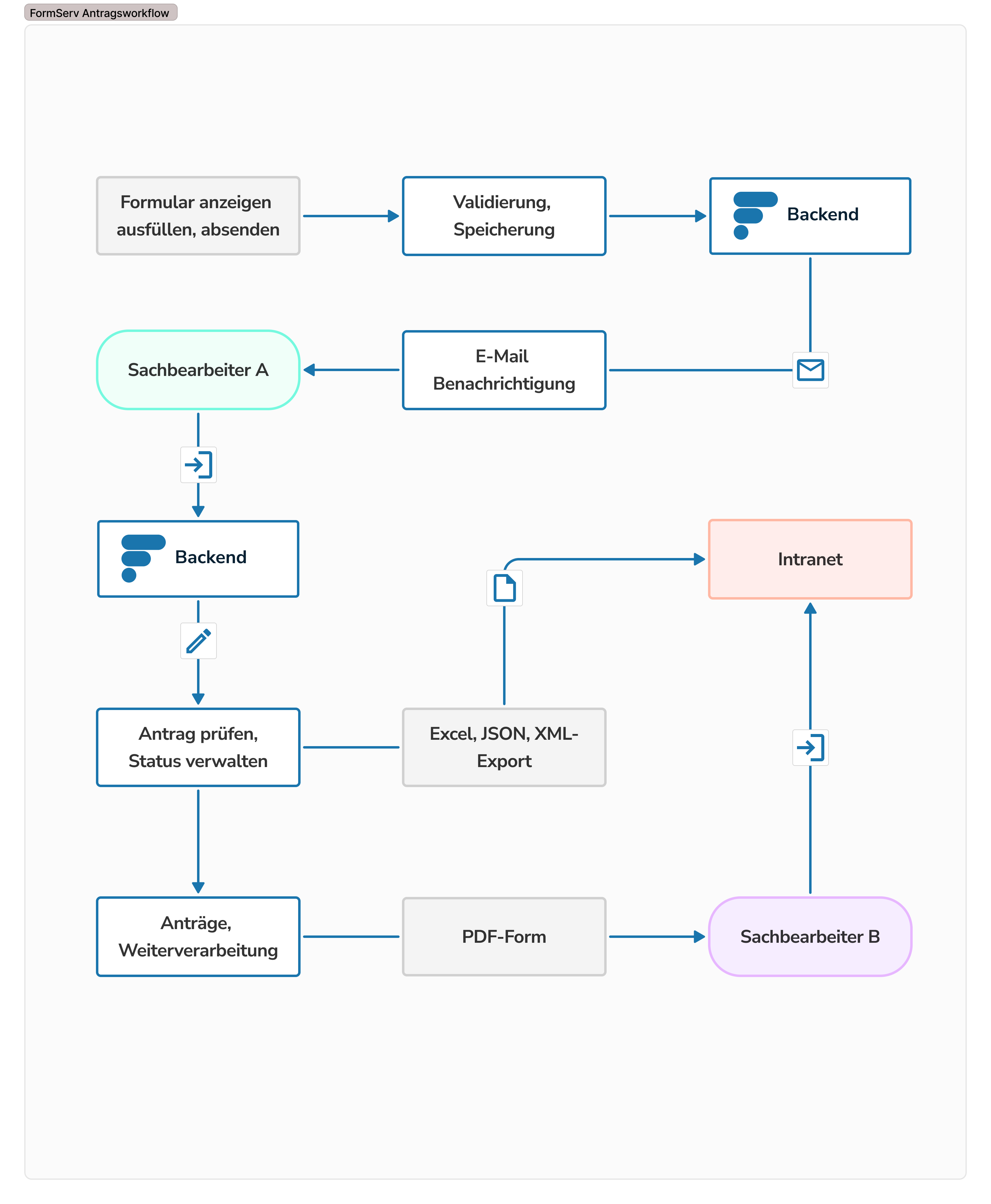 Automatische Weiterleitung innerhalb der Verwaltung Zuständigkeitslogik möglich (z. B. Genehmigungsprozesse).